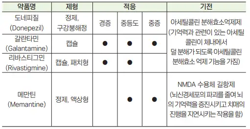 💡 치매 약을 처방받으셨다면, 아래의 4가지 약품 중 적어 도 하나의 약제를 드시는 경우가 많습니다.